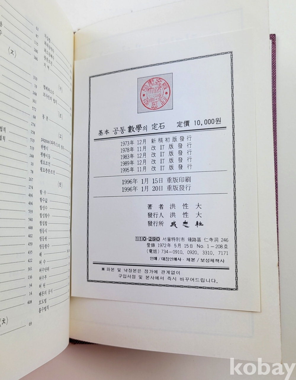 물 품 명 | 기본 공통수학의 정석(새과정) / 총1권 / 홍성대 / 1996년 / 성지사 |