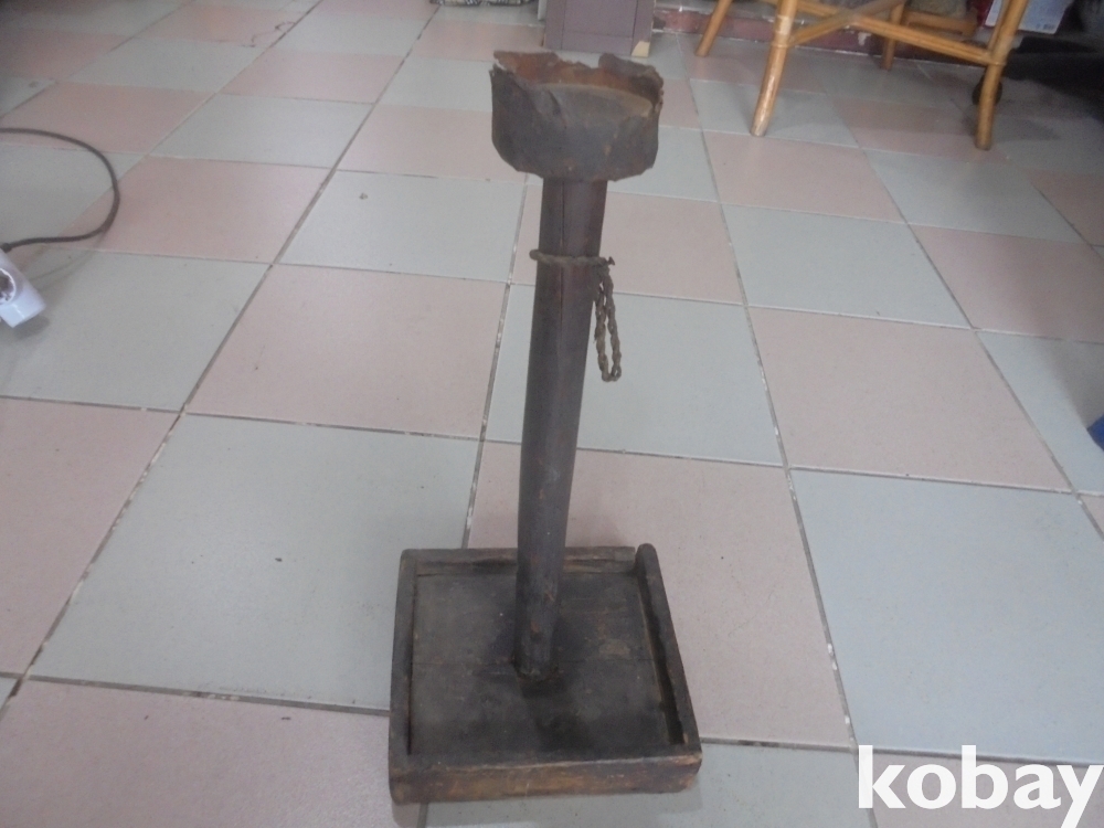 소나무로 만들었며 오래사용하여 때물이 짜글짜글한 자료가좋아 전시소장에 적합한 인기품인 등잔바탕