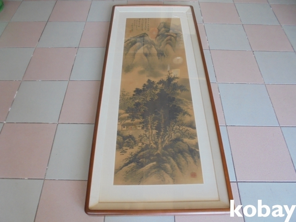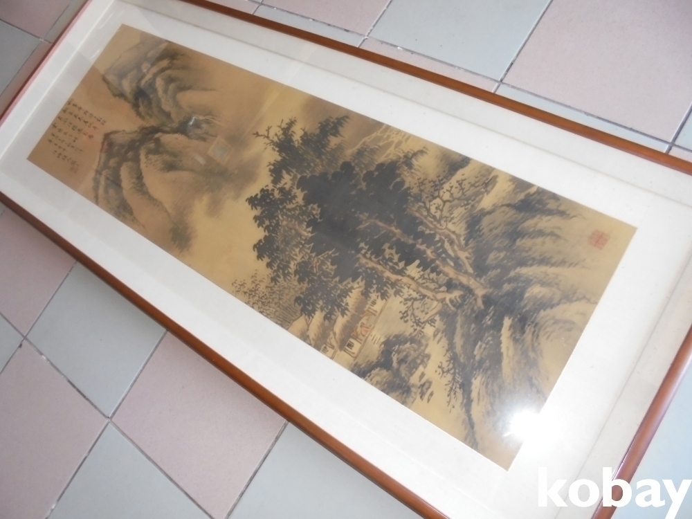 예사롭지않은 오래된 잘보존된 고색의 멋진 풍경 대형산수화로 화제와 화가명 알수없어 연구대상이되는