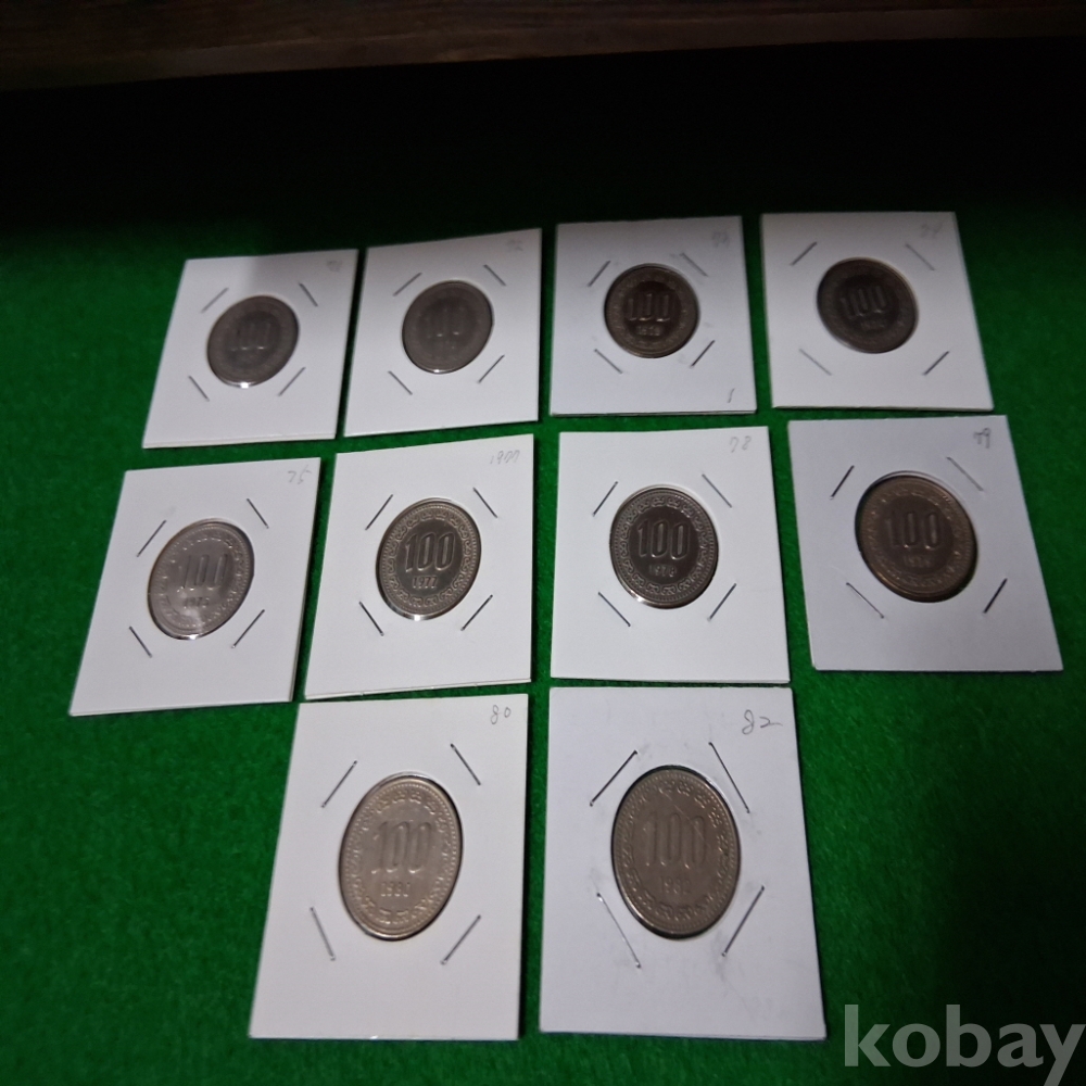 한국은행 1971----1982년년 100주 10매 사용제 (1976,81년제외)