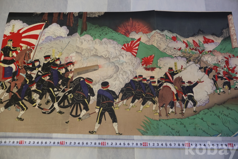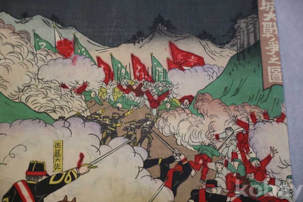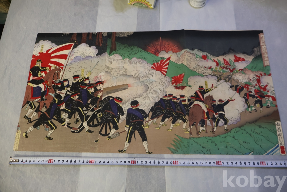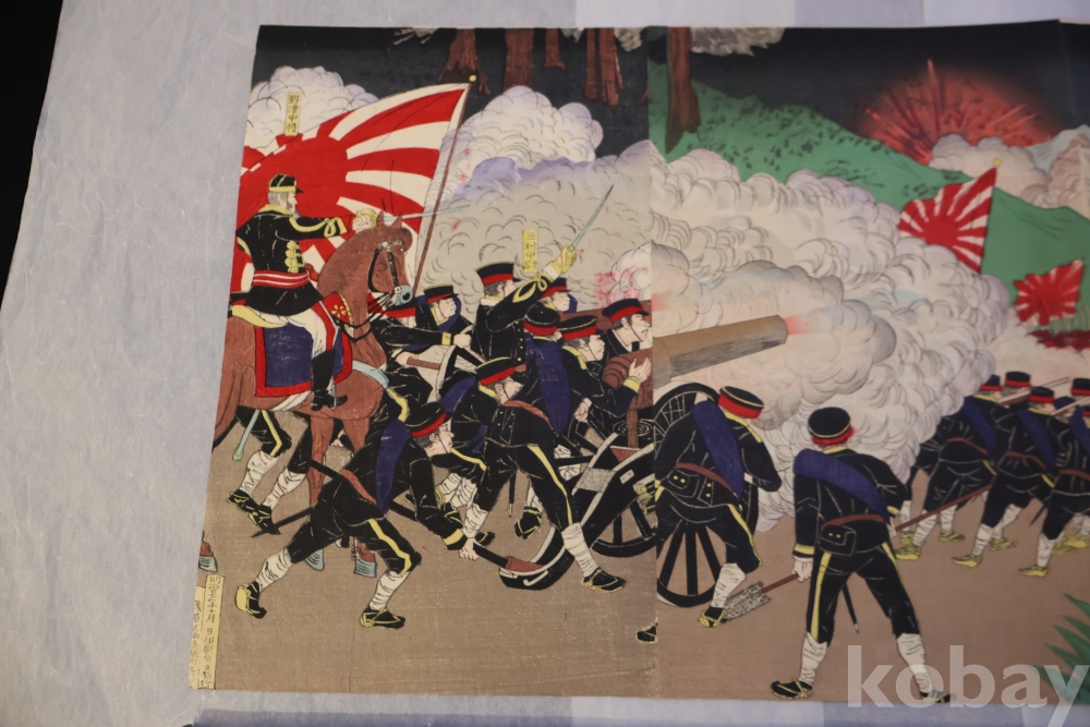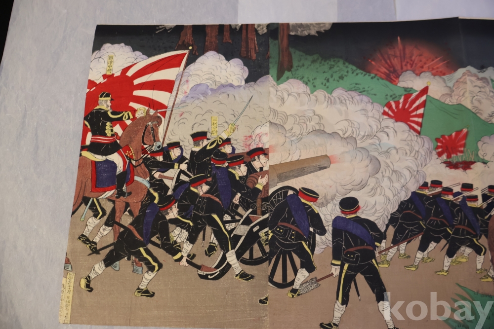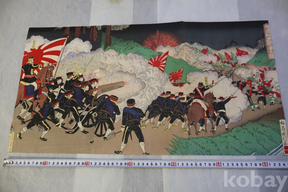 구련성 전투도 청일 전쟁 목판화 원본 임니다 세월의 흔적을 가진 당대의 명품 목판화 임니다 사진 참조 하세요 명치기의 원본 목판화 임니다