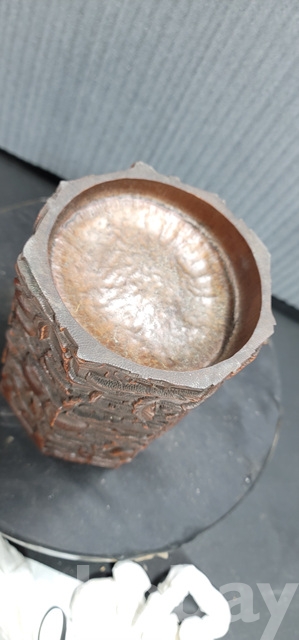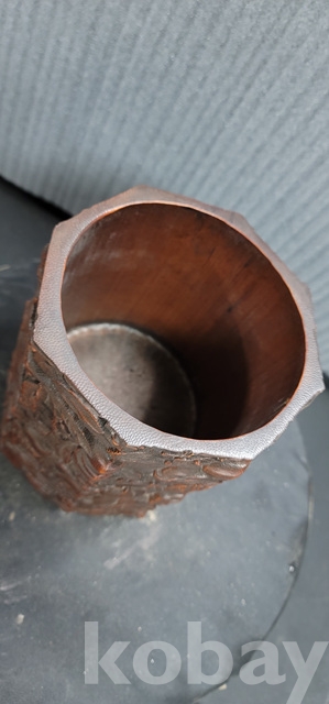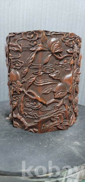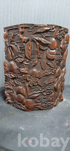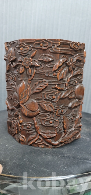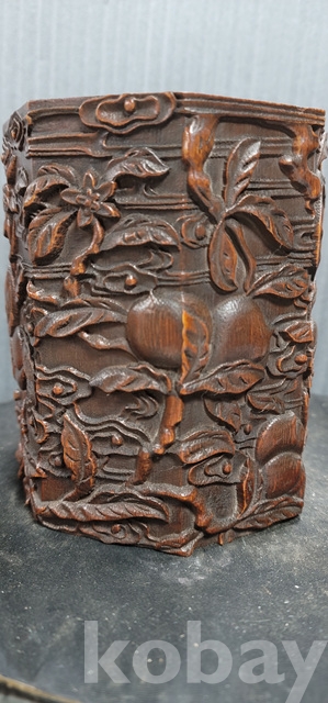 b-202.양각조각이잘된 팔각천도복숭아문양 대나무필통