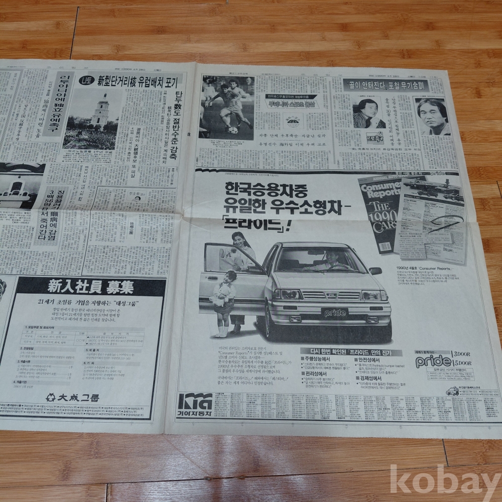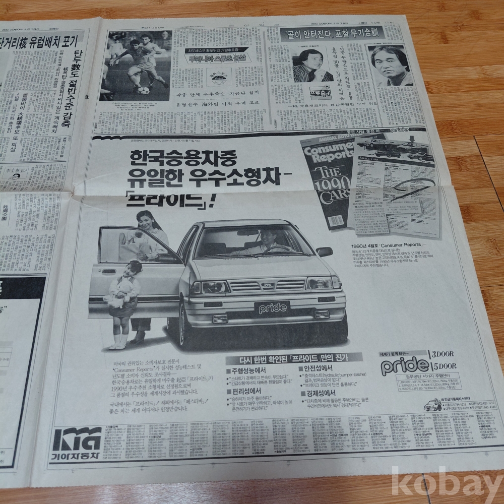 기아자동차 프라이드 광고 조선일보 90년4월28일 올려드립니다