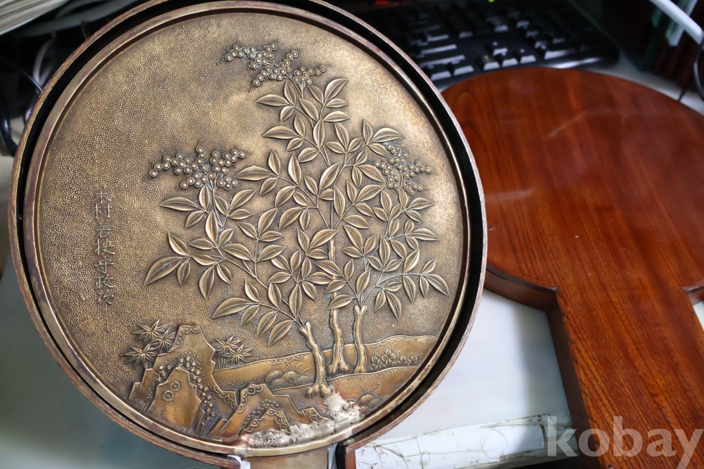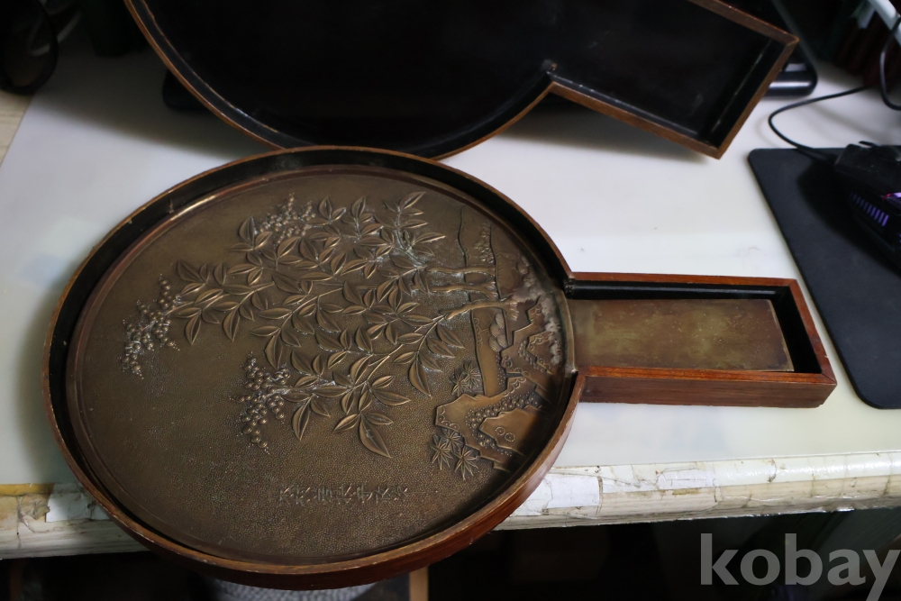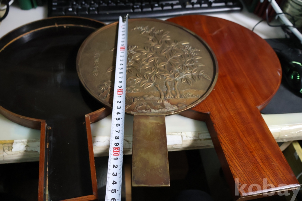 오리지날 상자를 가진 고미술 거울 이며 작가의 낙관을 가진 극히 귀한 문양을 가진 명물 이며 상자는 세월의 흔적이 보인며 손잡이를 감는 대나무 줄기?는 싹아서 없어짐 묵직 함니다 사진 그데로 임니다