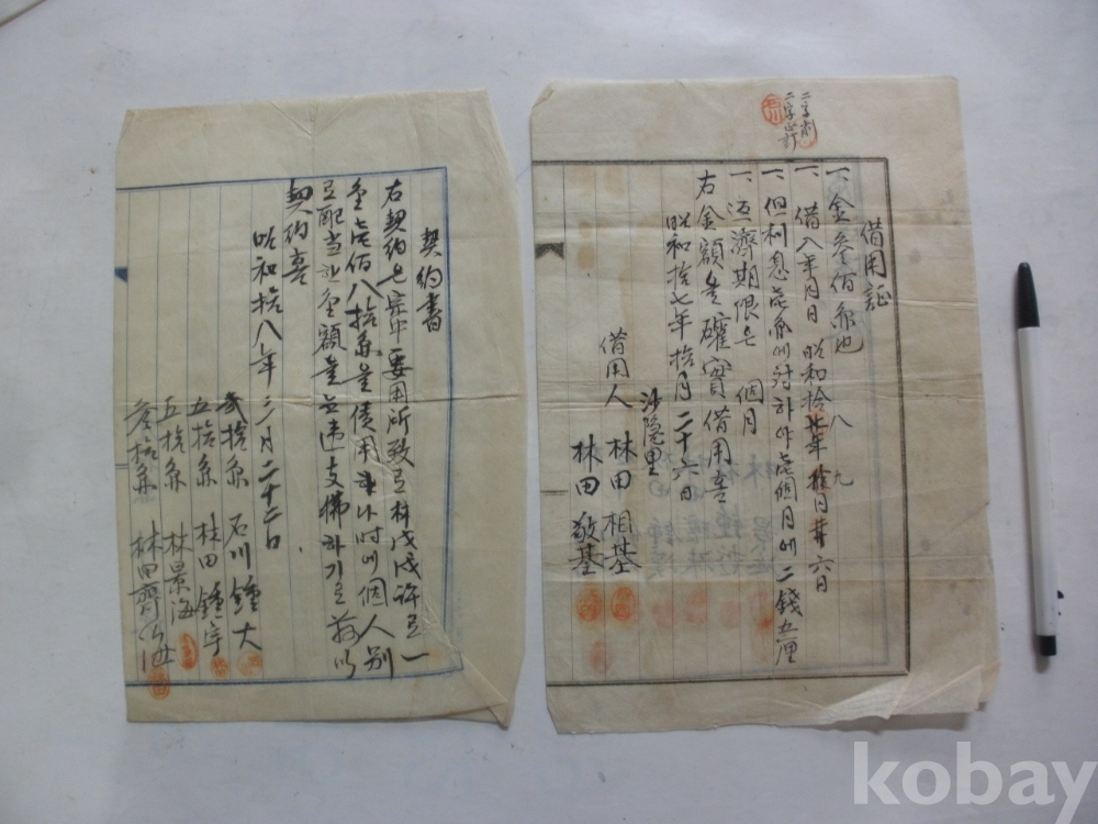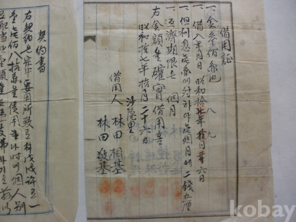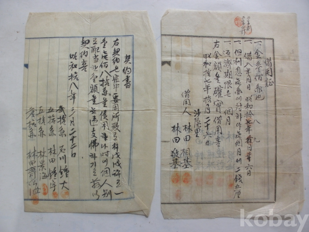 (한글병기) 차용 계약서 - 2매일괄 (소화17, 18년)