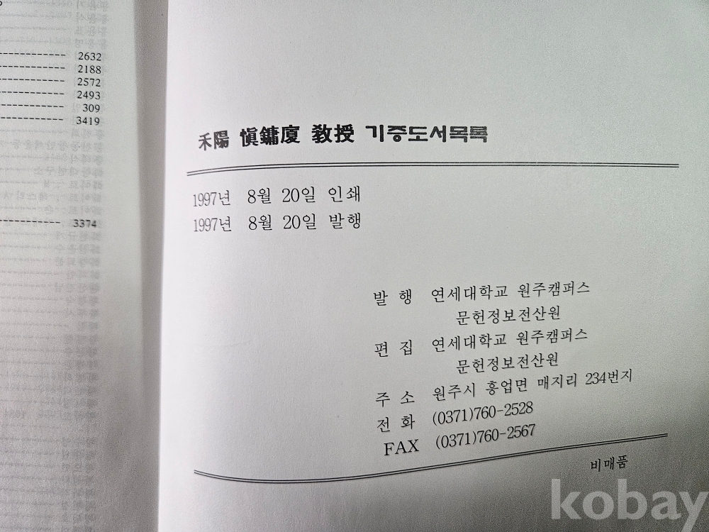 1] 품명 : 禾陽 愼鏞廈 敎授 기증도서목록 - 연세대학교 원주 캠퍼스