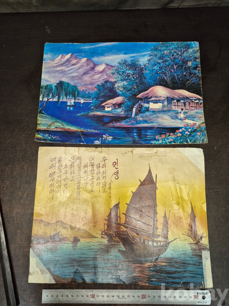 1970년대 인쇄된 이발소 그림 프린팅 인쇄물 2점 일괄 37*25