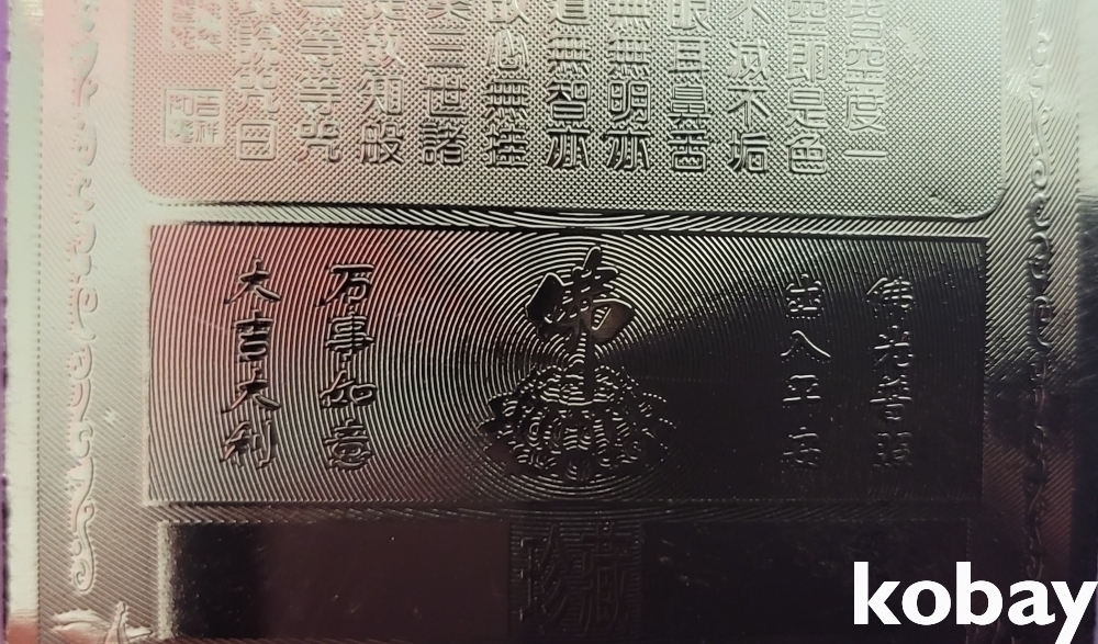 동판에 새겨진 남무소재연수약사불 개광호신불 일생평안 뒷면에는 다심경입니다,