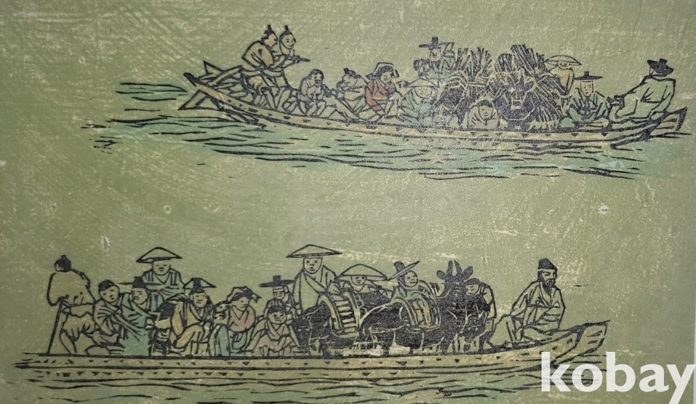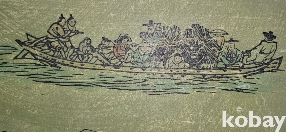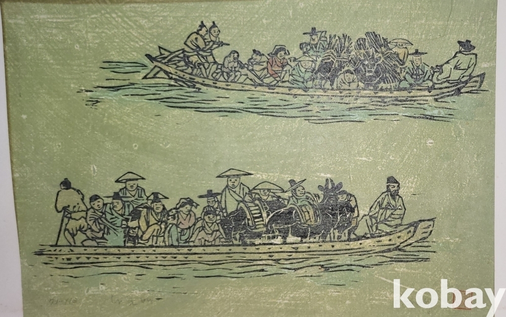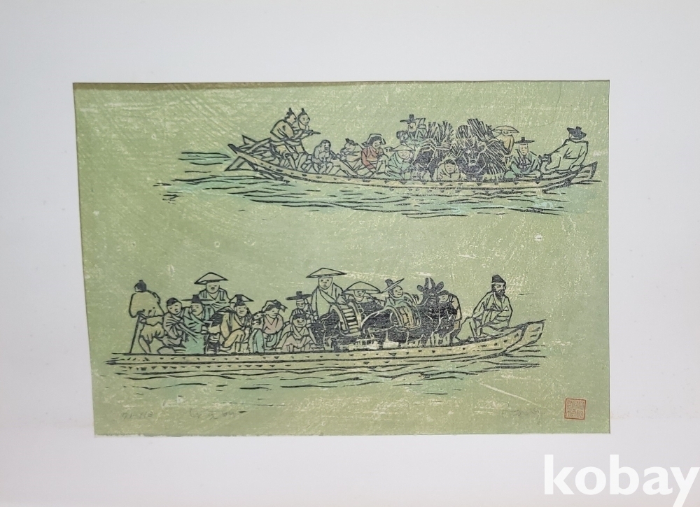 한국풍속판화로 1972년 한국판화 박물관에서 제작한 단원 김홍도 "나룻배" 목판화입니다,