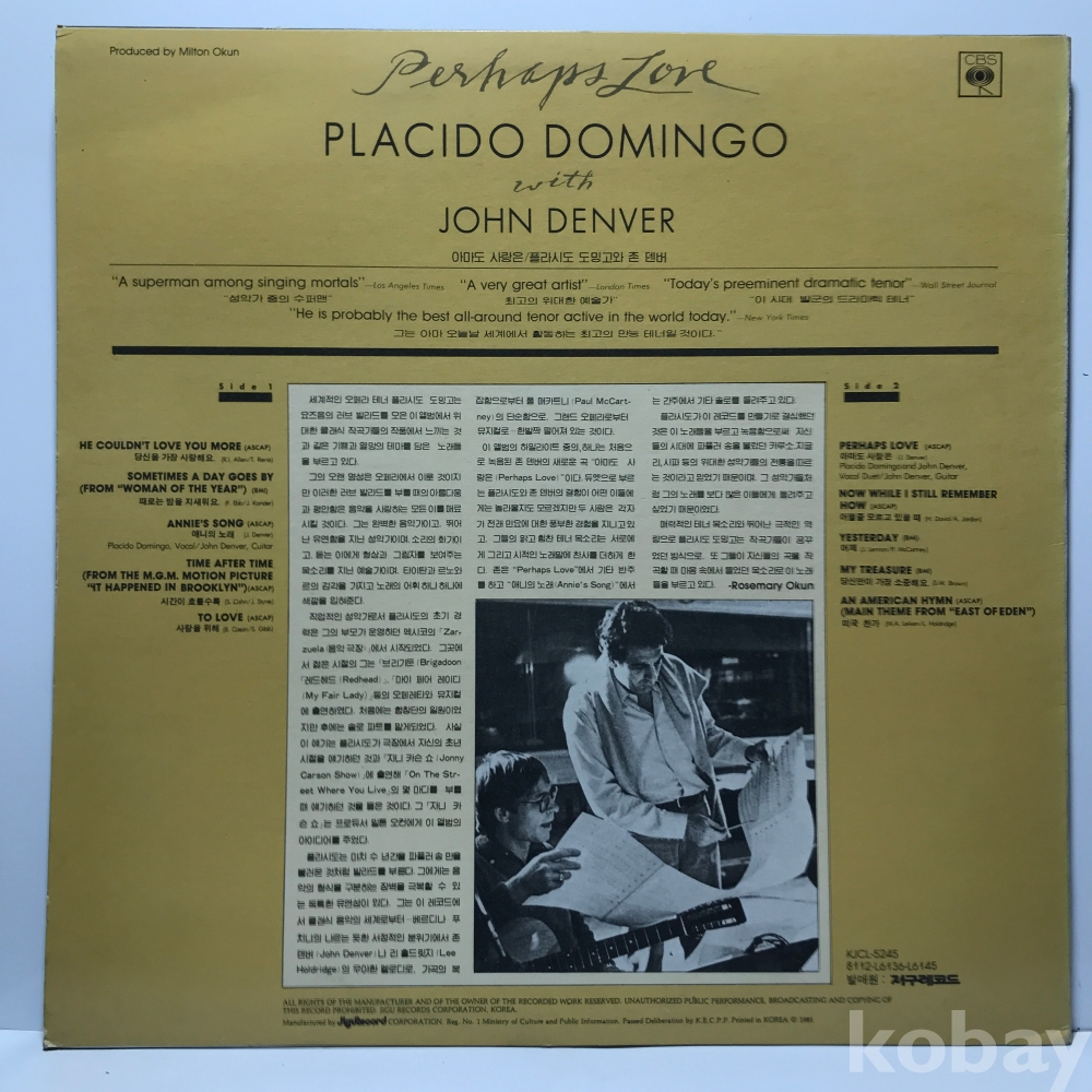 LP 83,800-67 Placido Domingo with John Denver - Perhaps Love . 자켓 EX 알판 EX 82 년 국내반