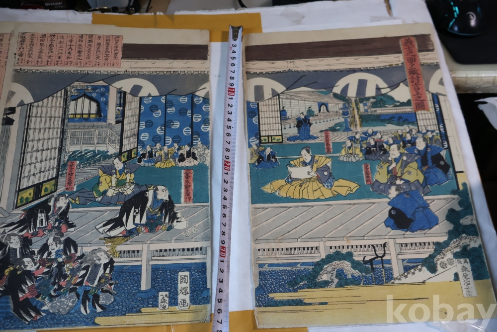 19세기 진품 목판화 원본 우타가와 구니테루의 진품 목판화 임니다 충신전을 소재로한 명화 임니다 사진 참조 하세요