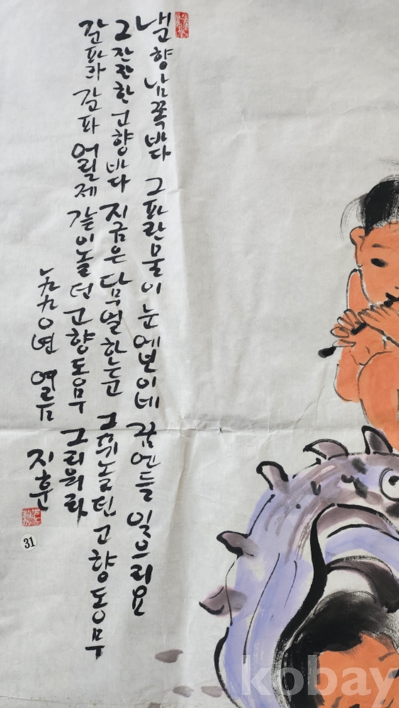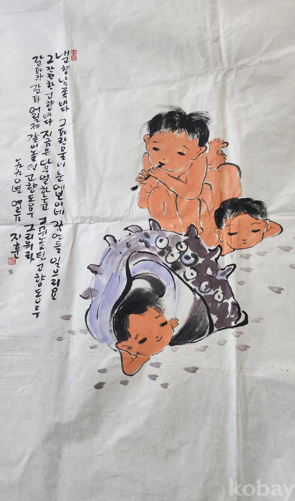 소라 껍데기와 함께하는 어린이 모습에서 천진난만 (天眞爛漫)함을 표출한 작품입니다.