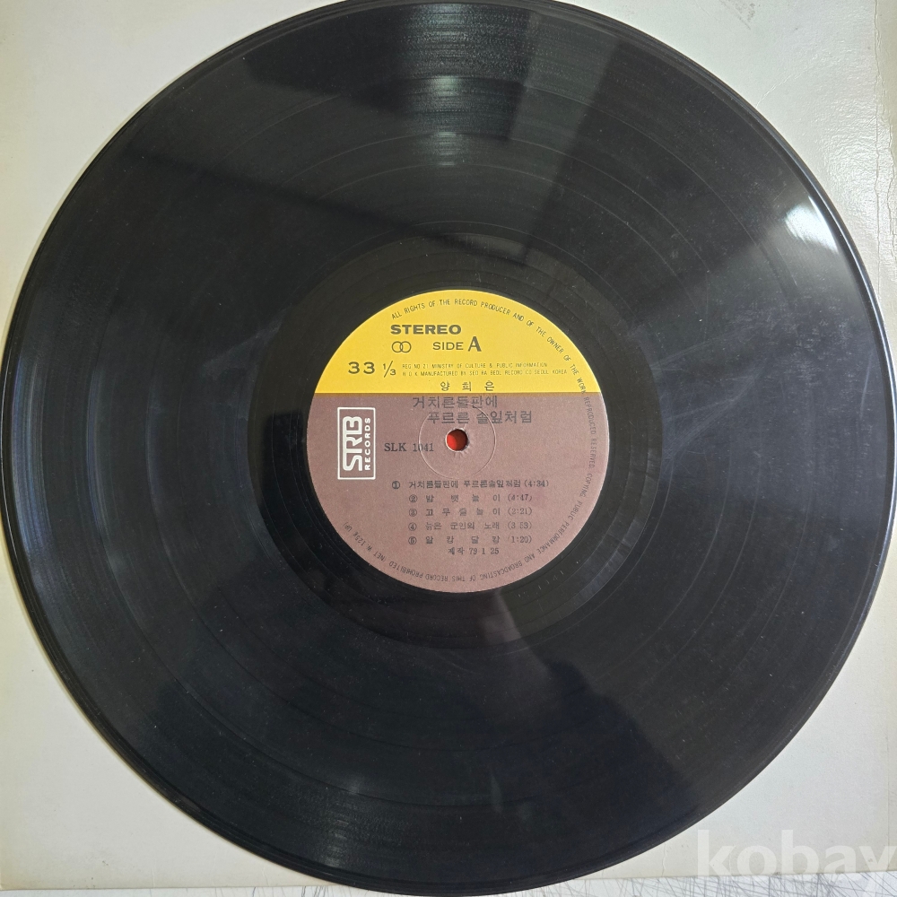 | 자켓상태 | VG : 주름, 접힘, 모서리 찢김 다수 | 음반상태 | VG : 생활 기스 다수, 가벼운 노이즈 존재 | 발매정보 | 초반 | 가사지여부 | 무 |