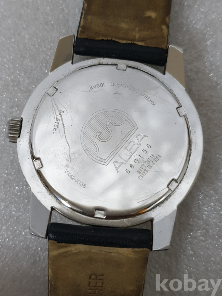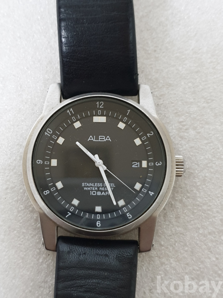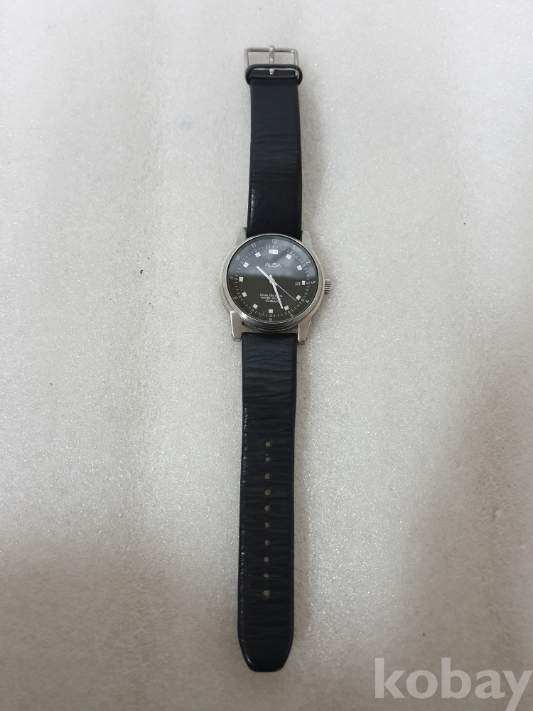 {천원경매} Y-1-1776 ALBA 원형검정알 검정줄 손목시계 (줄낡음, 작동확인안됨)