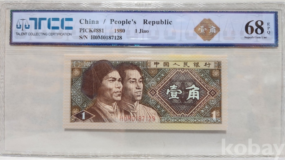 -1980년 중국 인민은행 발행 1각 지폐 TCC68 고등급 입니다.