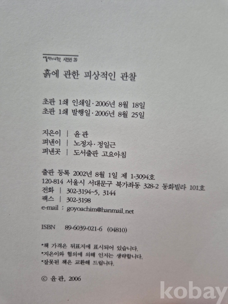 2006년 발간한 제7시집 『흙에 관한 피상적인 관찰』