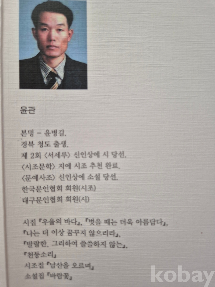 『시세루』 제2회 신인상에 시가 당선되면서 文壇에 등단(본명=윤병길).