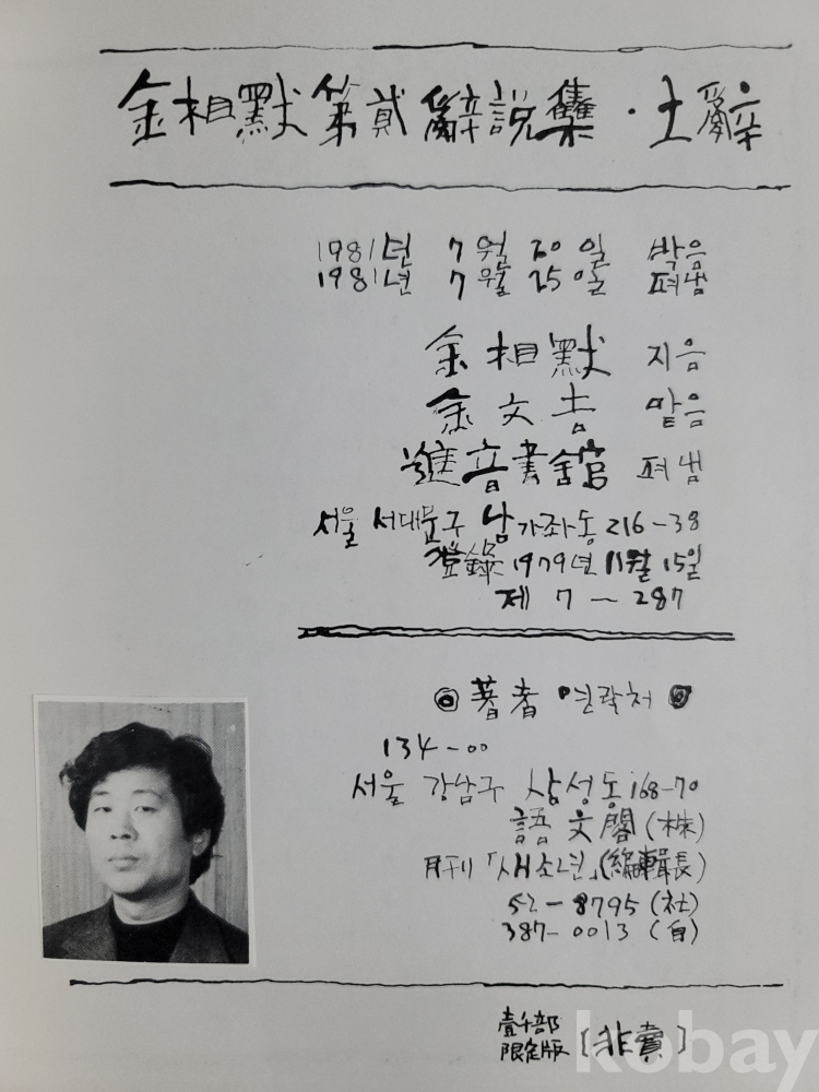 김상묵(충청남도 천원: 1947) 저자서명 시조집.