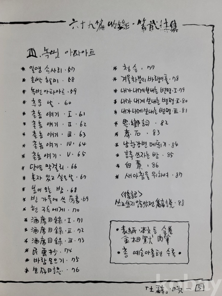 3부 69편의 작품과 저자 後記로 구성. 89쪽. 15.6X18.8X0.7cm