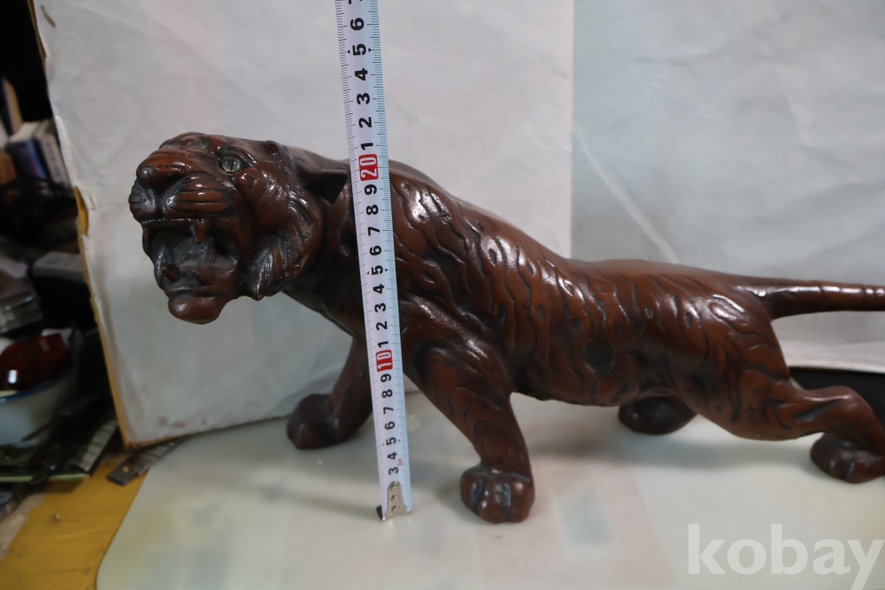 격이 다른 최고 명 임니다 격이 다른 명물 눈빛이 살아 있는 대형 호랑이 조각 상 임니다 표피의 색감 눈알 처리 등등 당대의 명품 이며 구리 철 합금 임니다 가죽의 문양 처리기법이 대단 함니다 두손으로 들어도 힘드는 무개감을 가진 명물