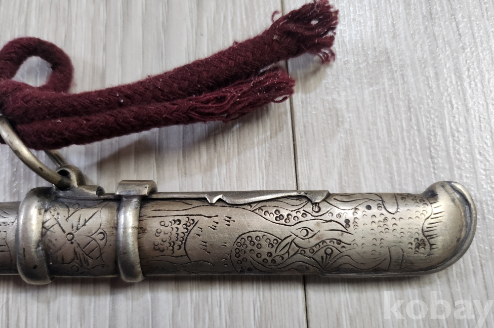 선조들이 사용한 백동 장도 입니다 양쪽표면에 수작업으로 꽂과 사슴이 조각되어 있습니다 사진 참조바랍니다