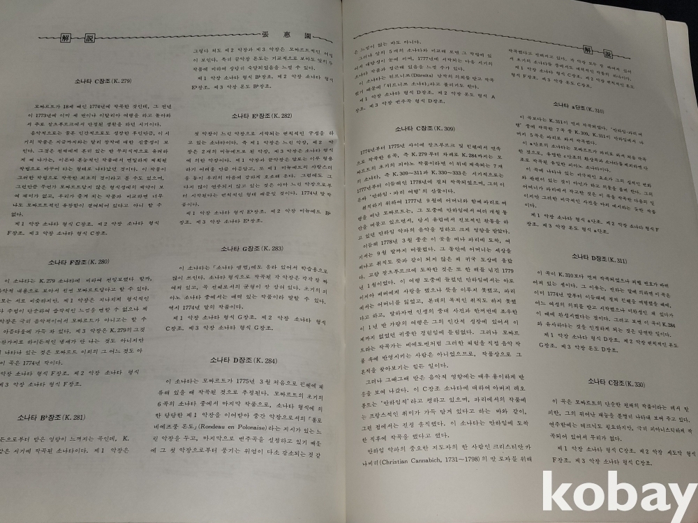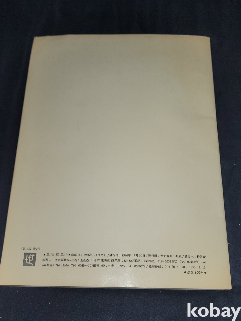 빈티지 세월 감이 느껴지는 1986년 발행된 모차르트 관련 악보 책입니다.