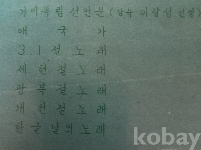 독립선언문(낭독 이갑성선생). 2. 3.1절 노래.