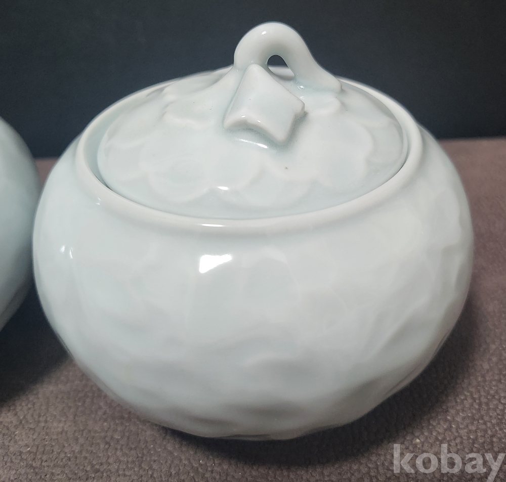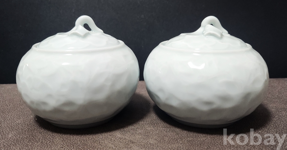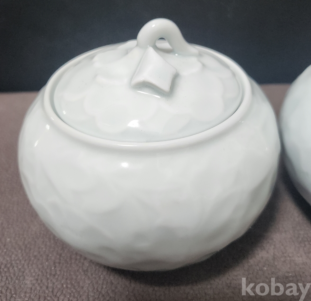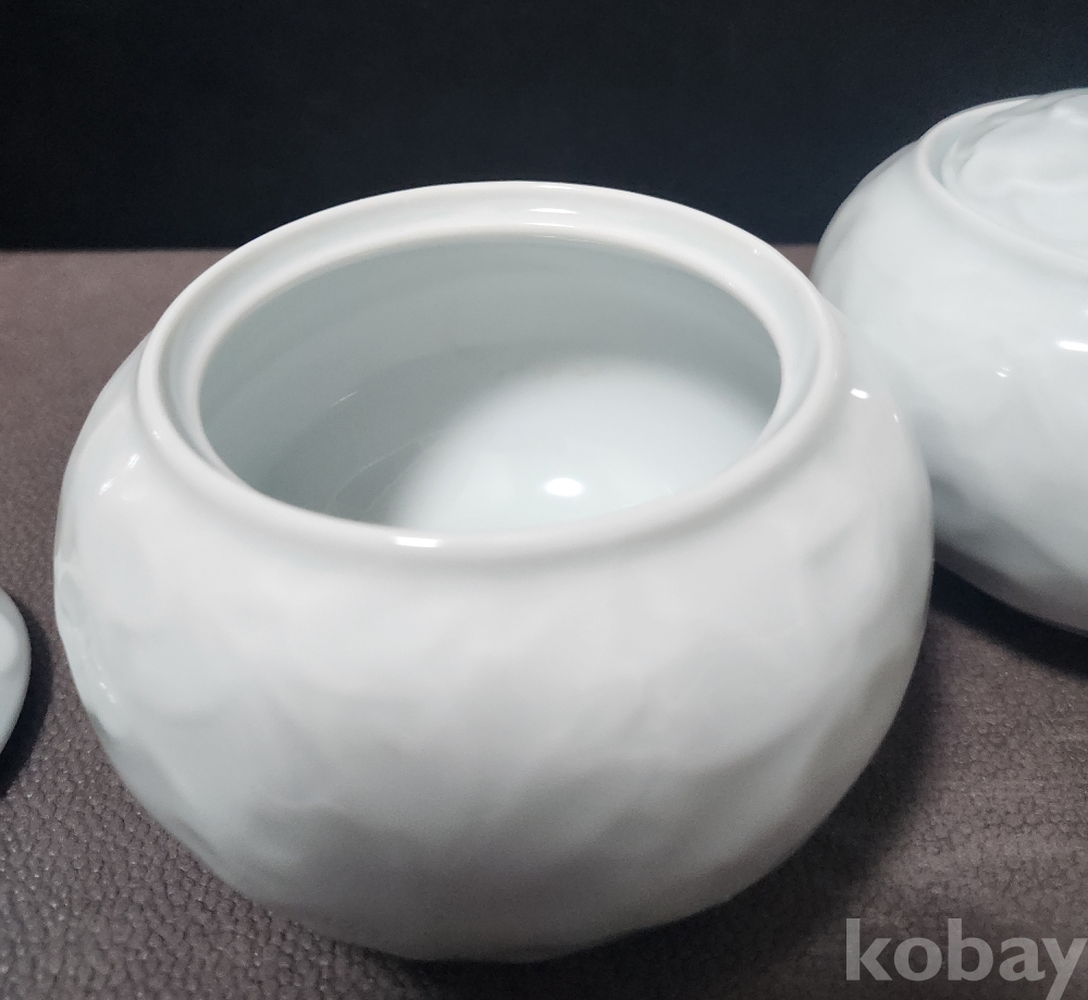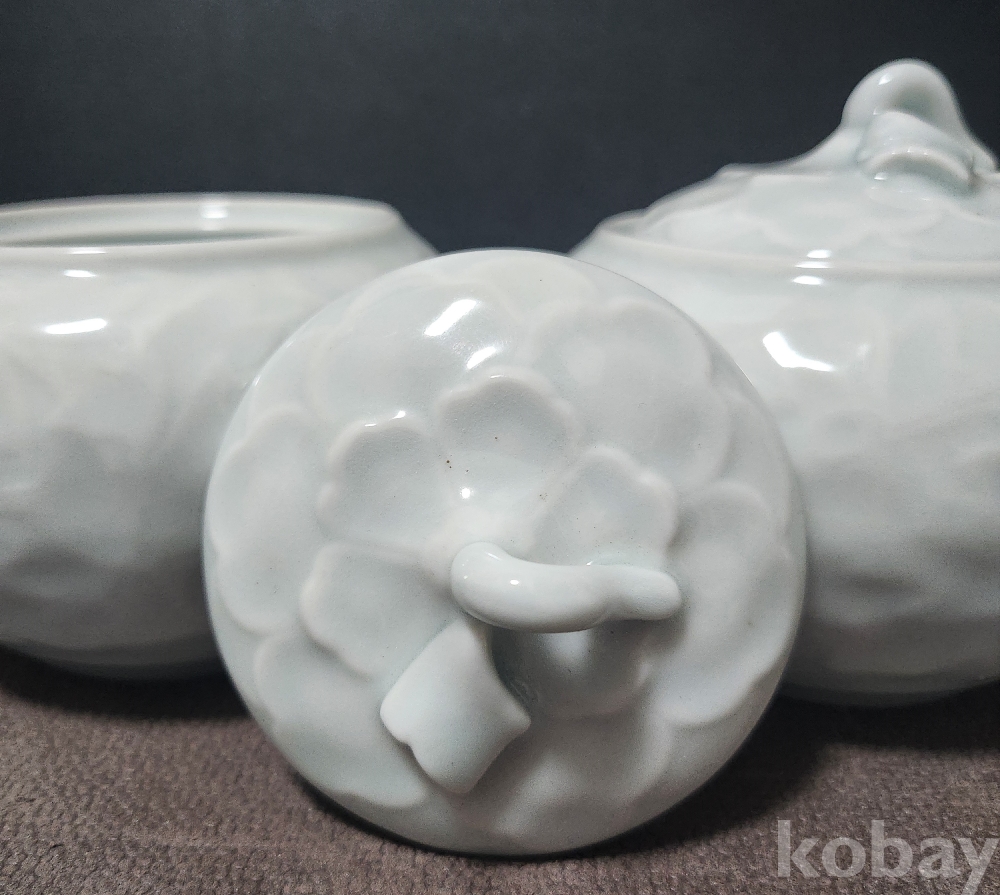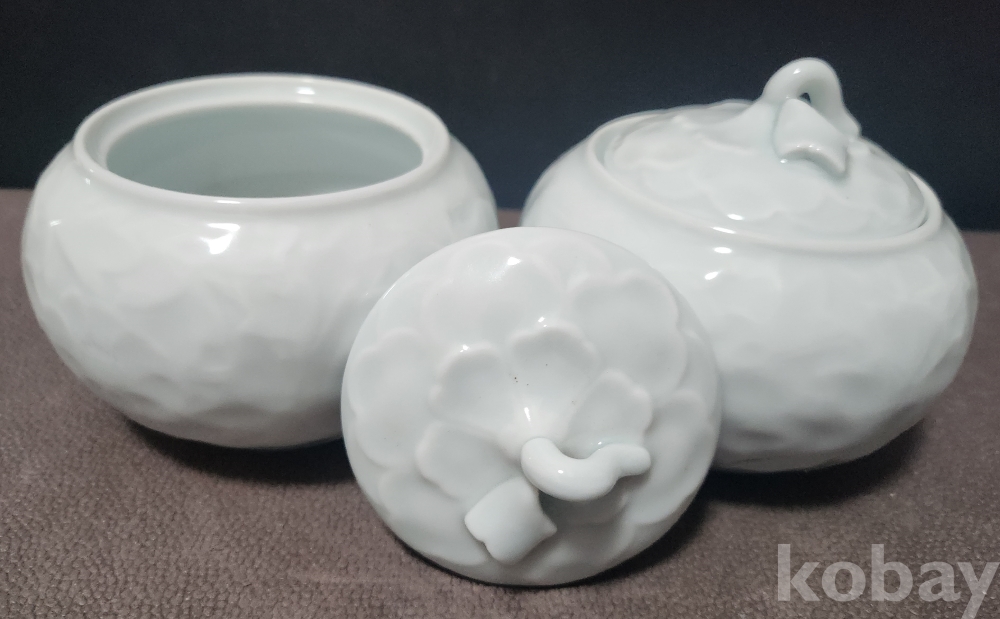 백자양각화훼문쌍합 白磁陽刻陰刻草花紋雙盒 < 도예가 음각 수결 작품 >