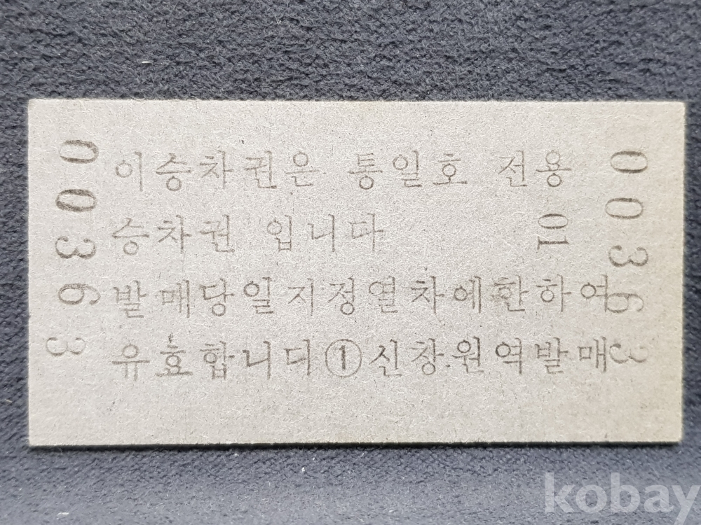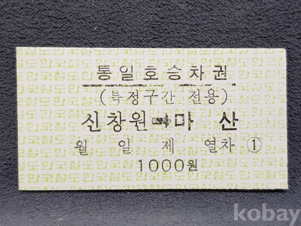 - 미사용 통일호 승차권(특정구간전용) " 신창원 ▶ 마산 " 1000원