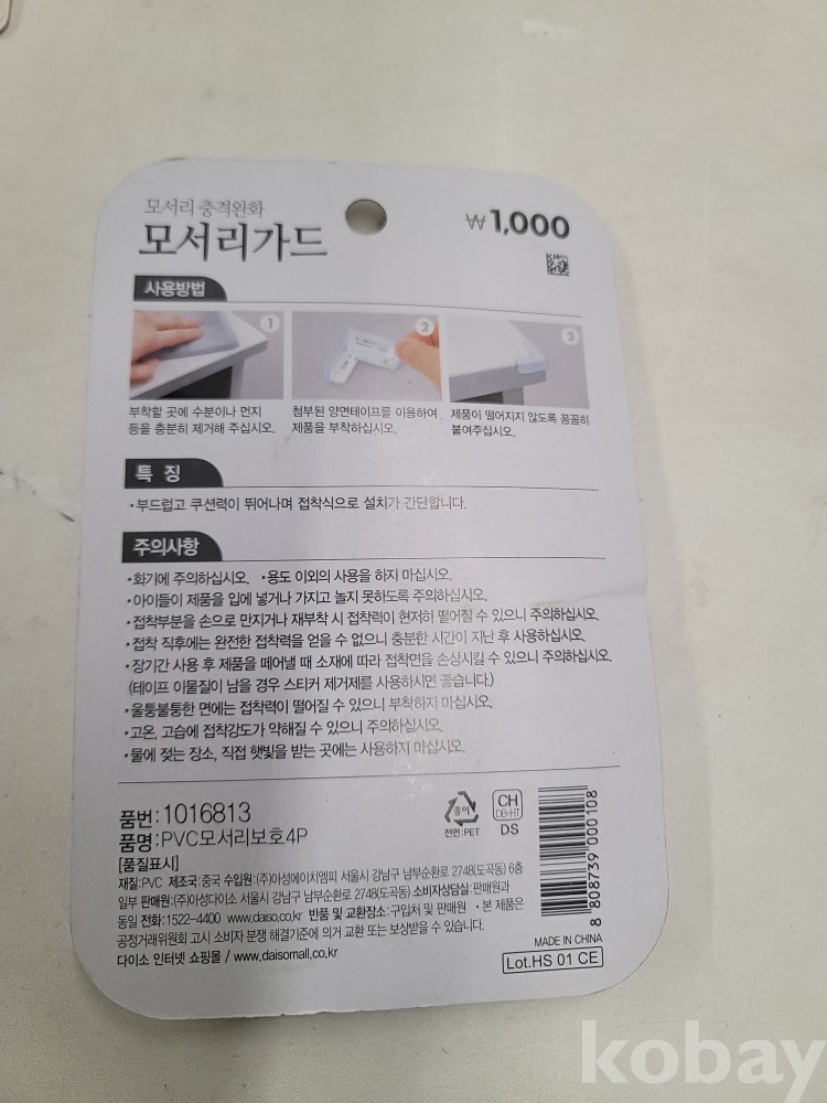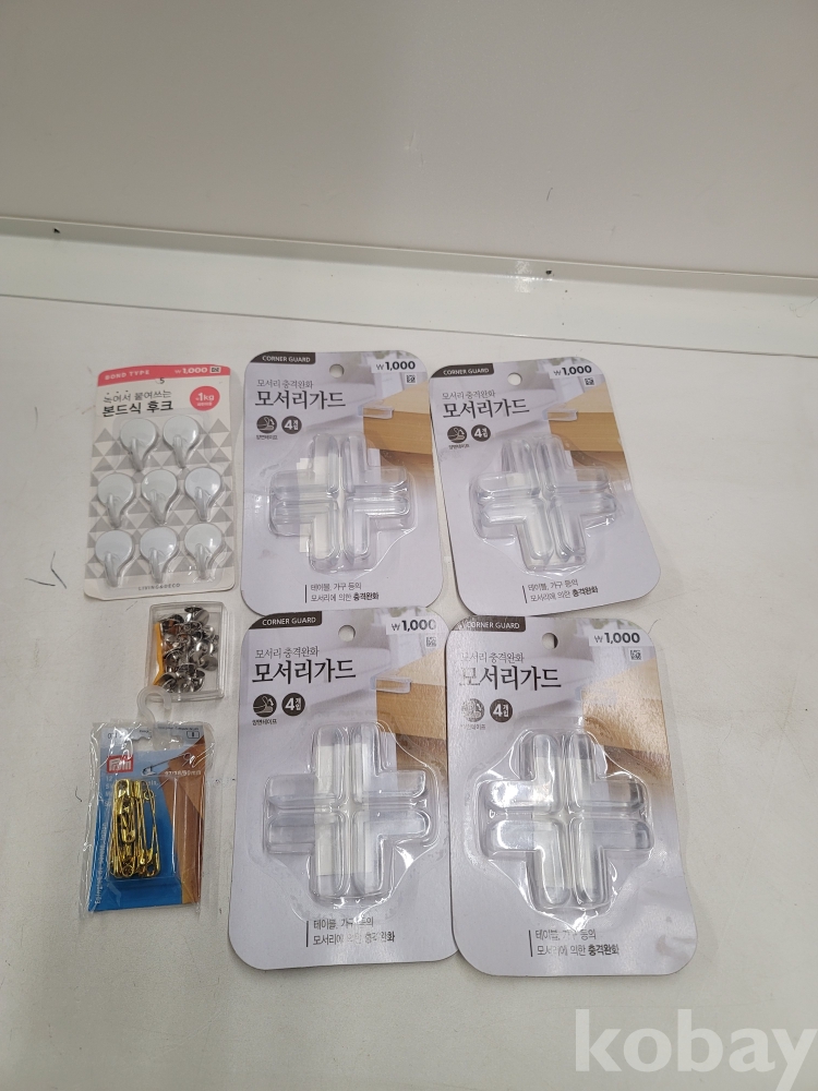 [*천원행복*] J - 1-0754 모서리 가드 4개, 보드식 후크 1개, 안전핀 1개, 압정 1개 일괄