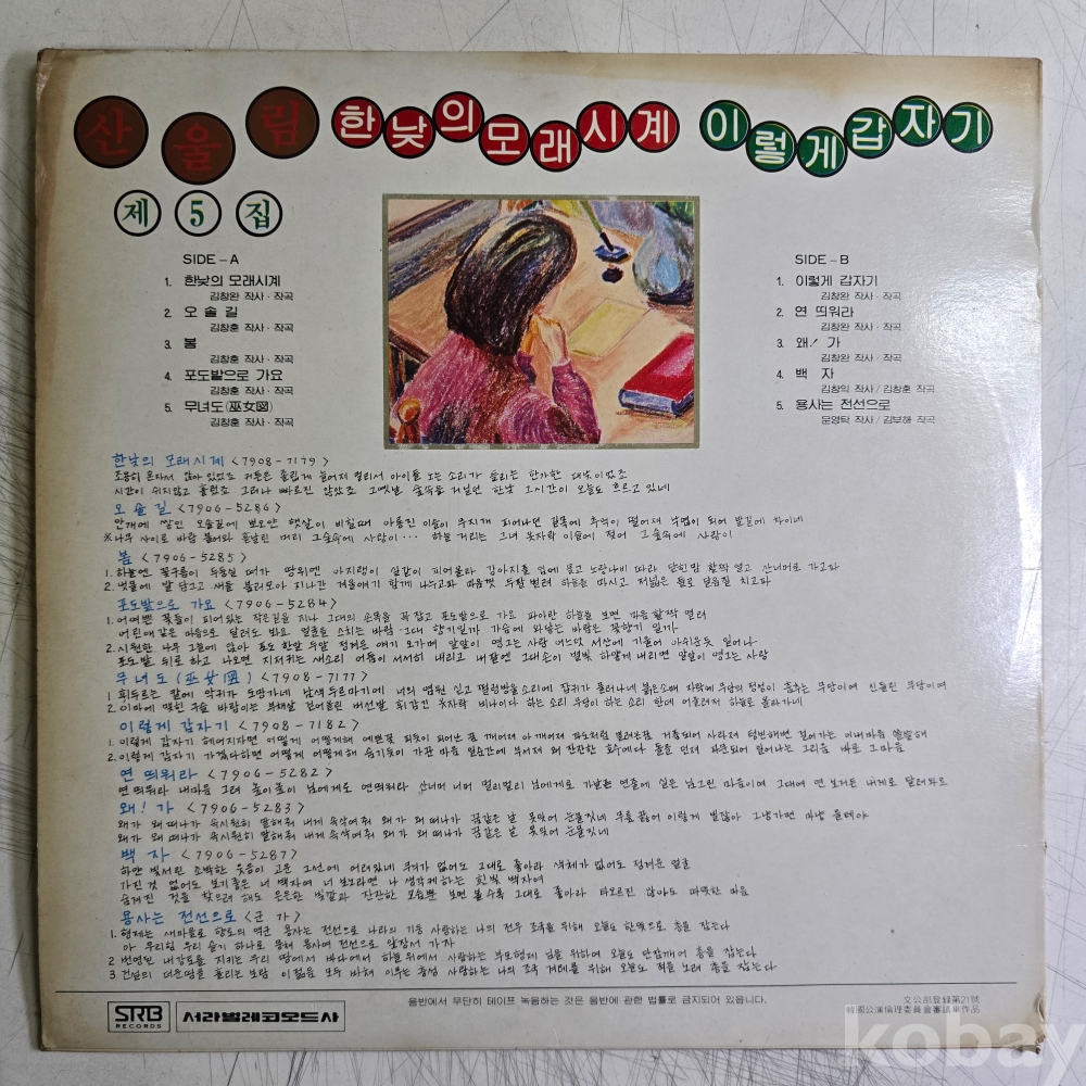 | 자켓상태 | VG : 주름, 접힘, 모서리 찢김 다수 | 음반상태 | VG : 생활 기스 다수, 가벼운 노이즈 존재 | 발매정보 | 초반 | 가사지여부 | 무 |