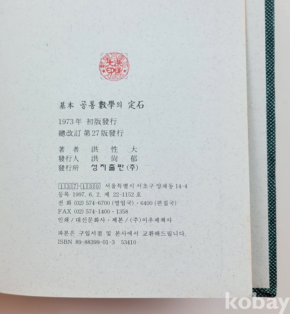 물 품 명 | 기본 공통수학의 정석 총1권 / 1997년 추정 / 홍성대 / 성지출판 |