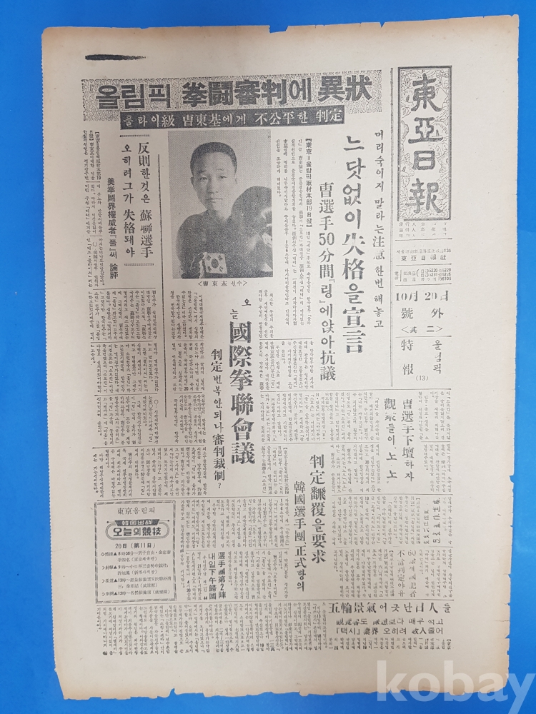 **** 동아일보 호외(1964.10.20)*제18회 동경올림픽 소식/플라이급 조동기에게 불공정한 판정