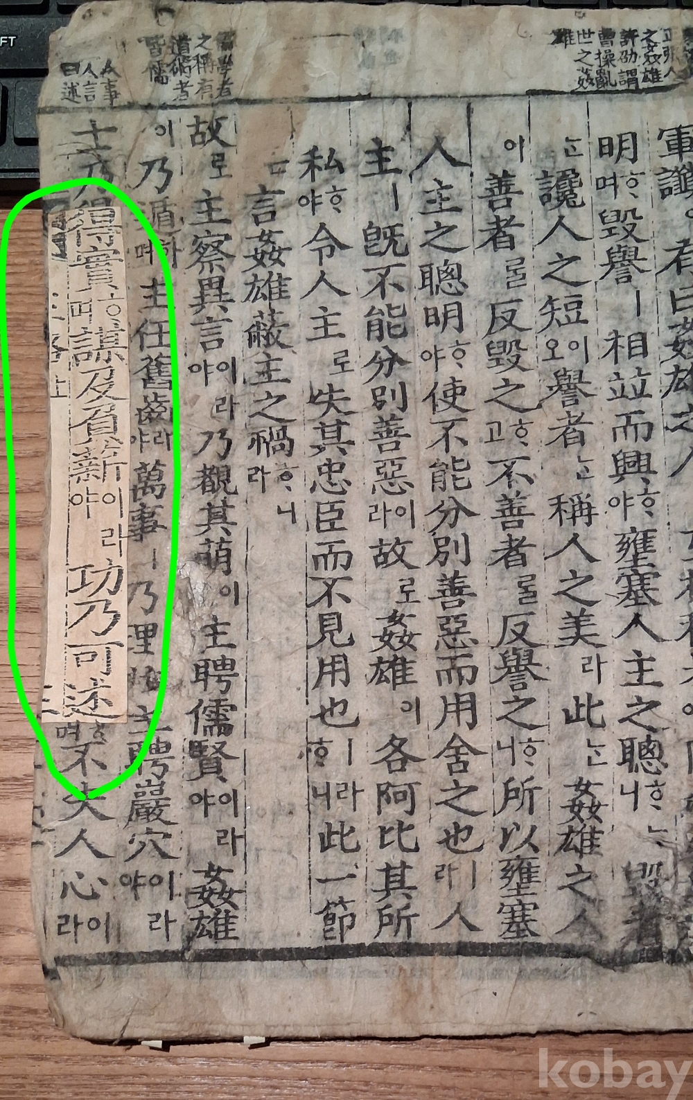 일부 파손된 일부 단어를 복사로 보강(마지막 두번째 초록색 마킹, 한페이지 이미지 참조)