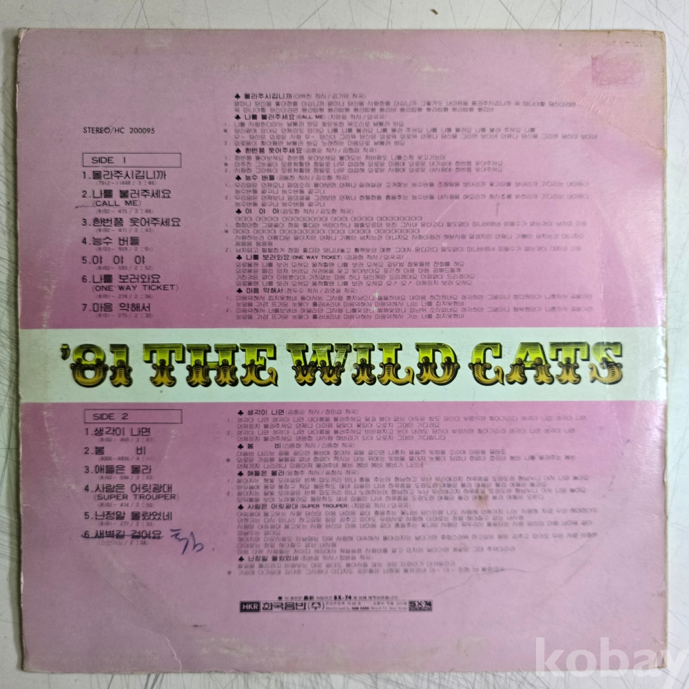 | 자켓상태 | VG : 주름, 접힘, 모서리 찢김 다수 | 음반상태 | VG : 생활 기스 다수, 가벼운 노이즈 존재 | 발매정보 | 초반 | 가사지여부 | 무 |
