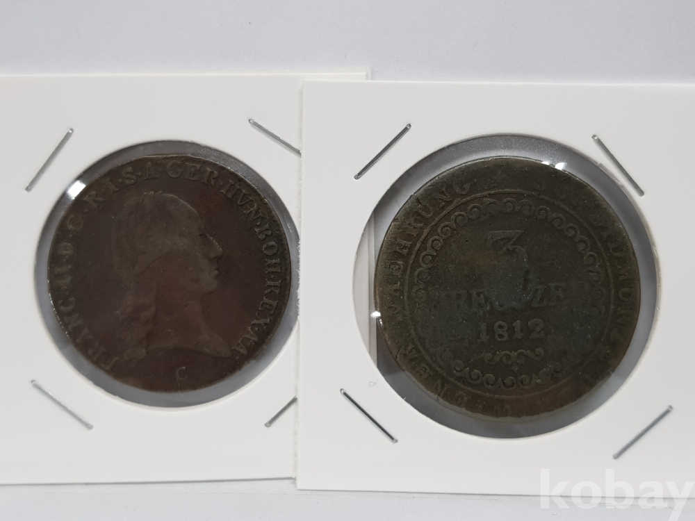 - 1812년, 1890년 오스트리아, 프라하 100년 이상 된 해외주화 2점 일괄