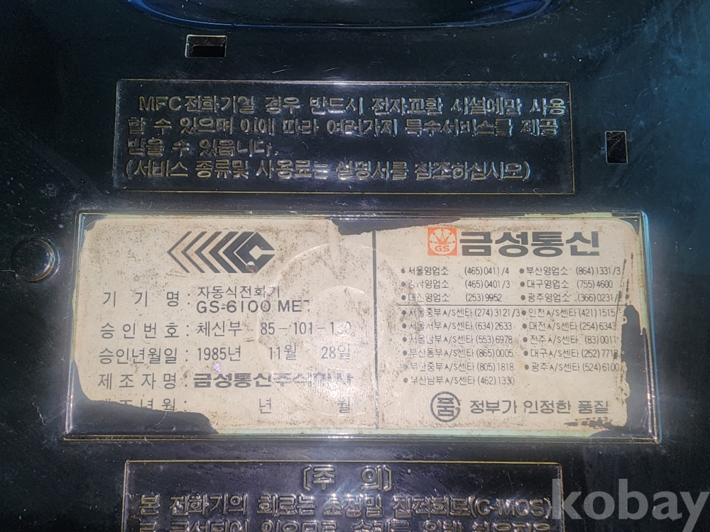 제조일: 1985년 11월 28일 (체신부 승인 완료)