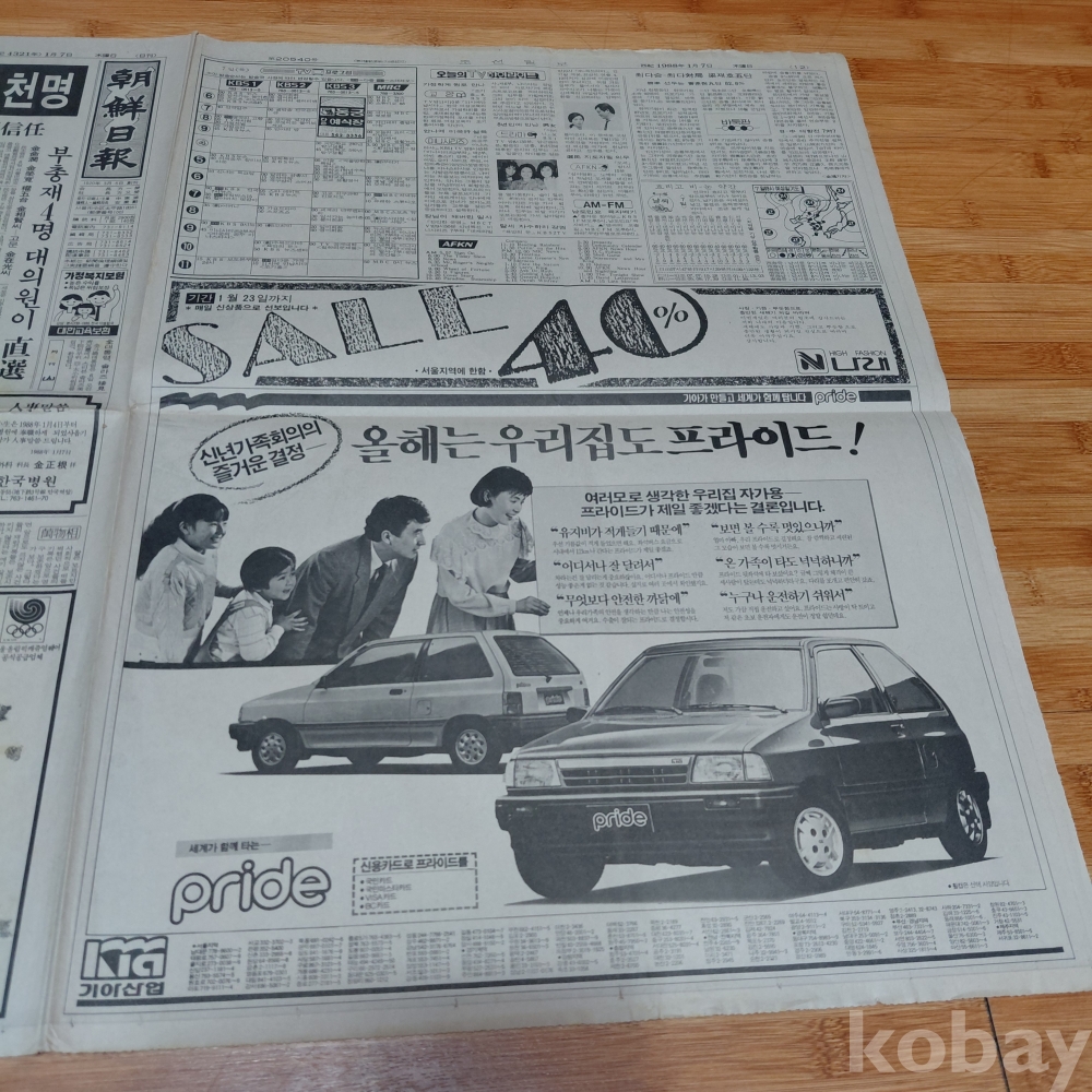 기아자동차 프라이드 광고 88년1월7일 조선일보 올려드립니다