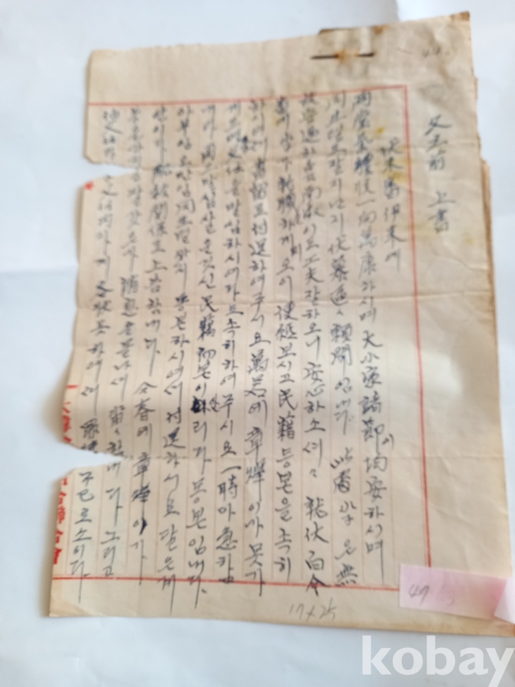 간찰 47) 양정묵 서찰/ 부주전상서