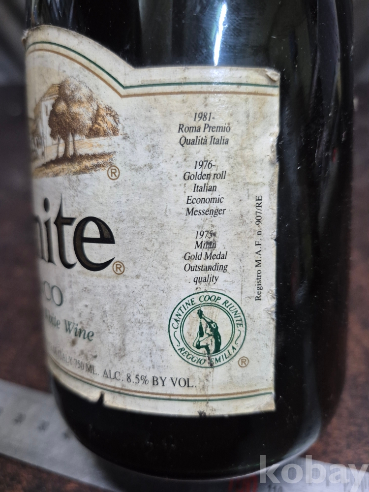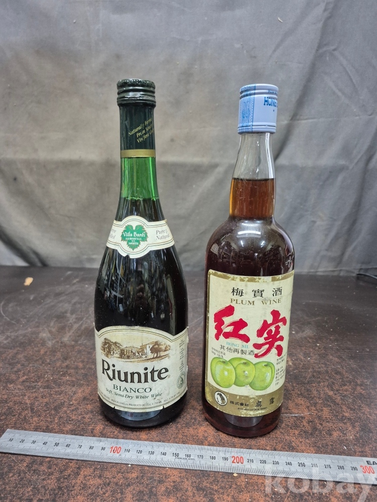1980년대 진로 소주에서 생산된 홍실 매실주 와 19820년대 이탈리아산 리유니트 비앙코 화이트 와인 소품용자료용 7.5*7.5*29