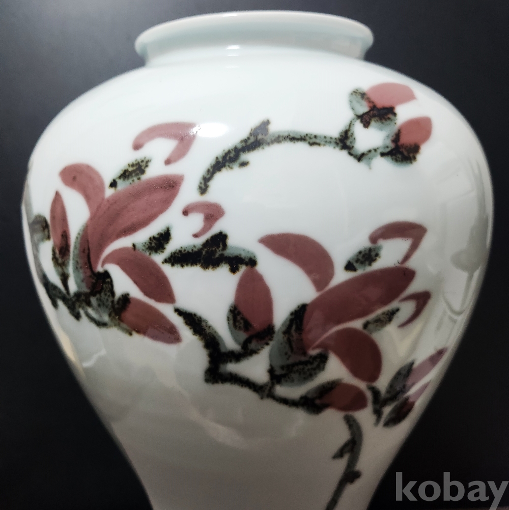 < 1호 도예 명장 > 고성[古成] 조병호[曺秉浩] 백자철화진사자목련문호 白磁鐵畵辰沙紫木蓮紋壺