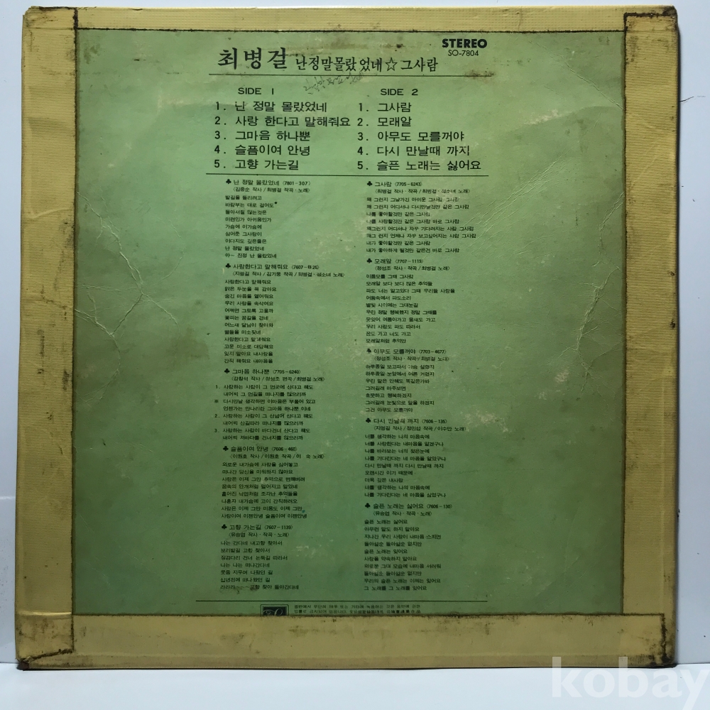 LP 30,940-120 최병걸 - 난 정말 몰랐었네/ 정소녀 - 그사람 . 자켓 VG 알판 VG+ 78 년 국내반