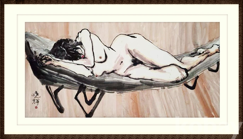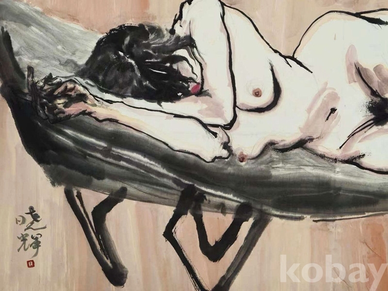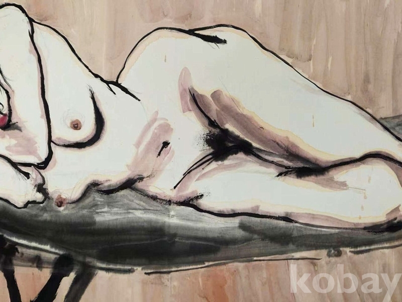 2000년대작인 본작품은 왕효휘의 보기드문 중국화 누드작품이며