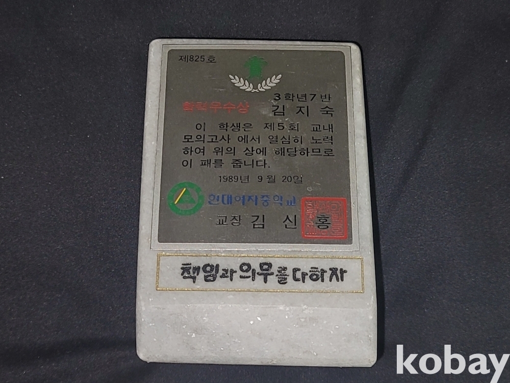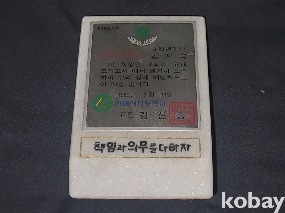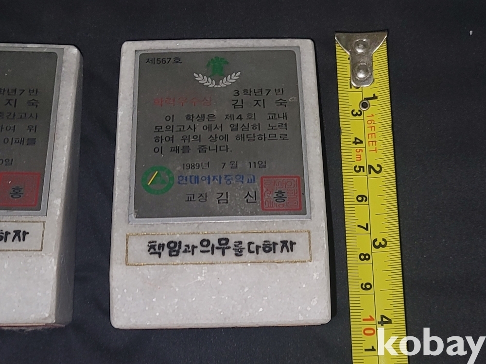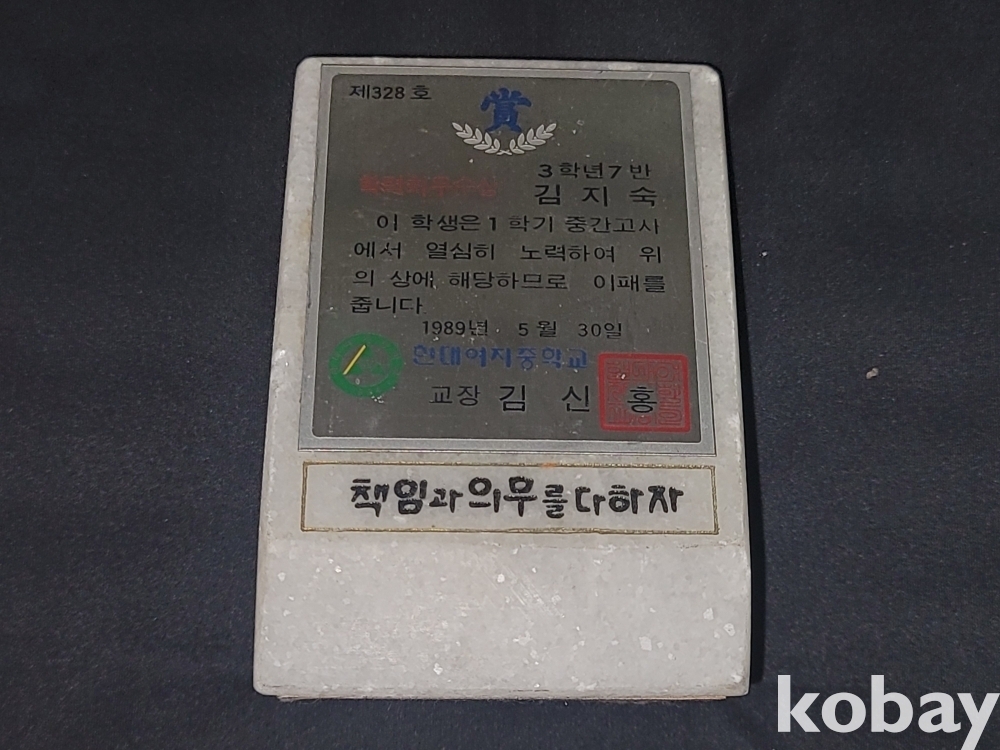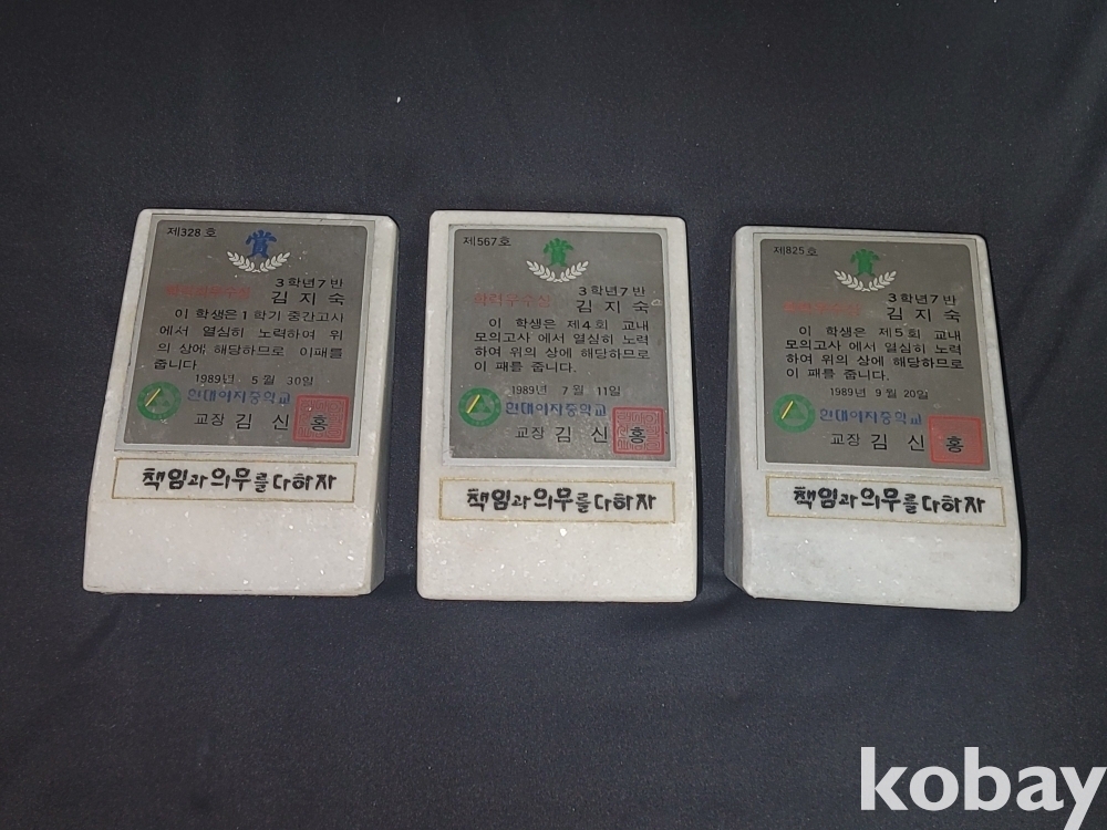 빈티지 1989년 현대여자중학교 상패 3종 일괄입니다.
