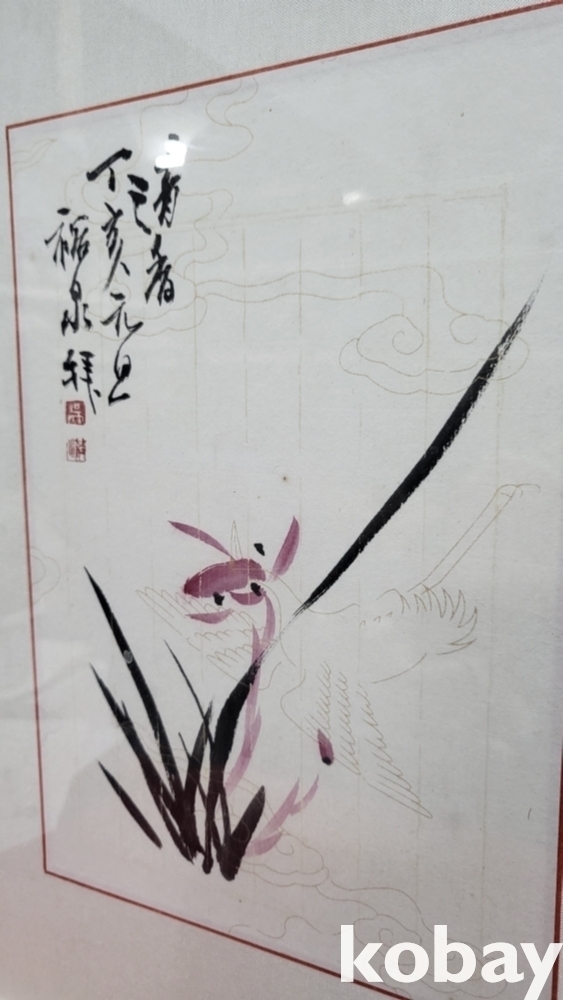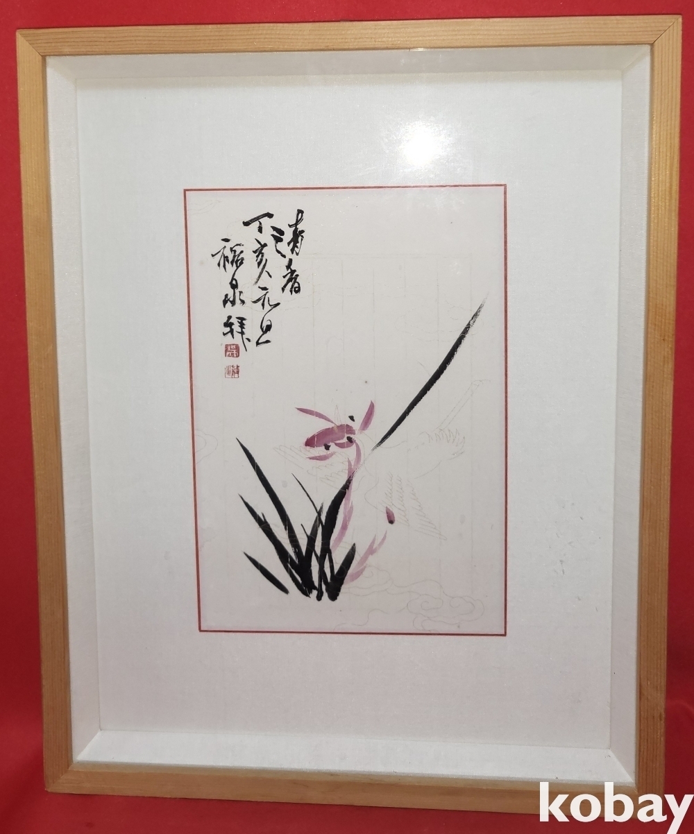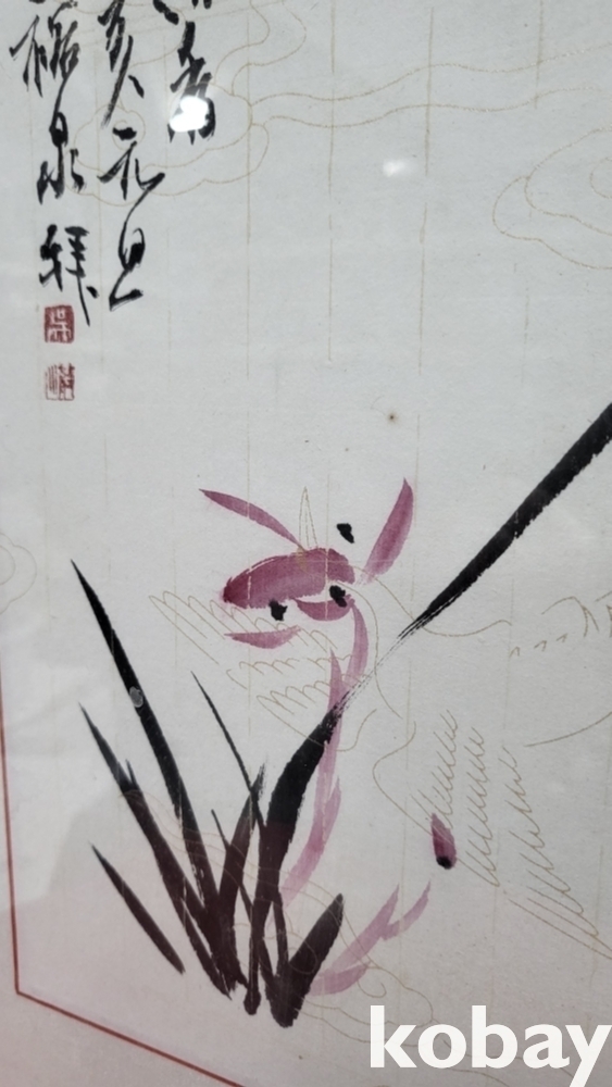 裕泉(유천) 作 홍화가 핀 난(蘭) 그림으로 최고급 이중 액자입니다,