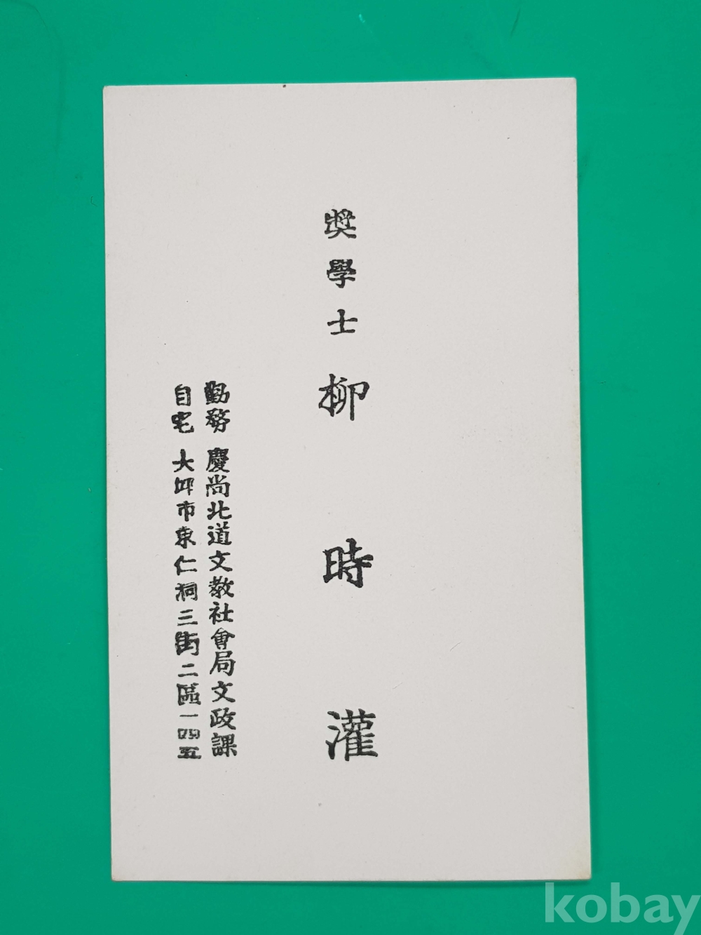 1950년대 경상북도 문교사회국 문정과 장학사 유시권 명함