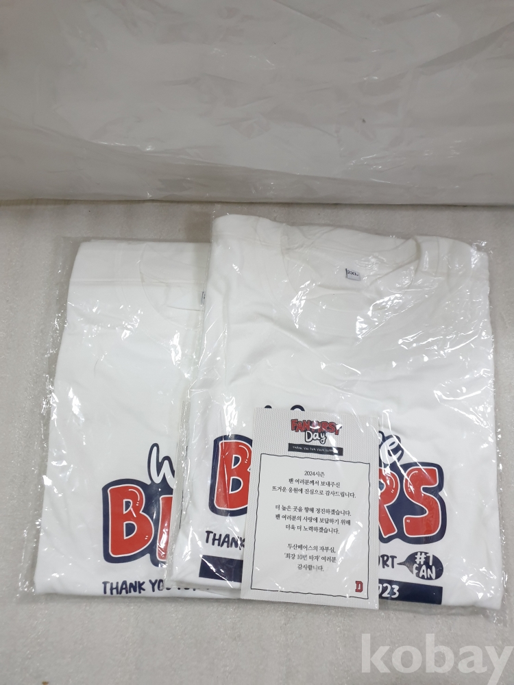 {천원경매}1-1668 두산 베어스 흰색 반팔티 2장 (2XL)