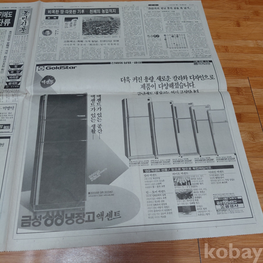 금성 싱싱냉장고 엑센트 광고 농민신문 89년7월17일 올려드립니다