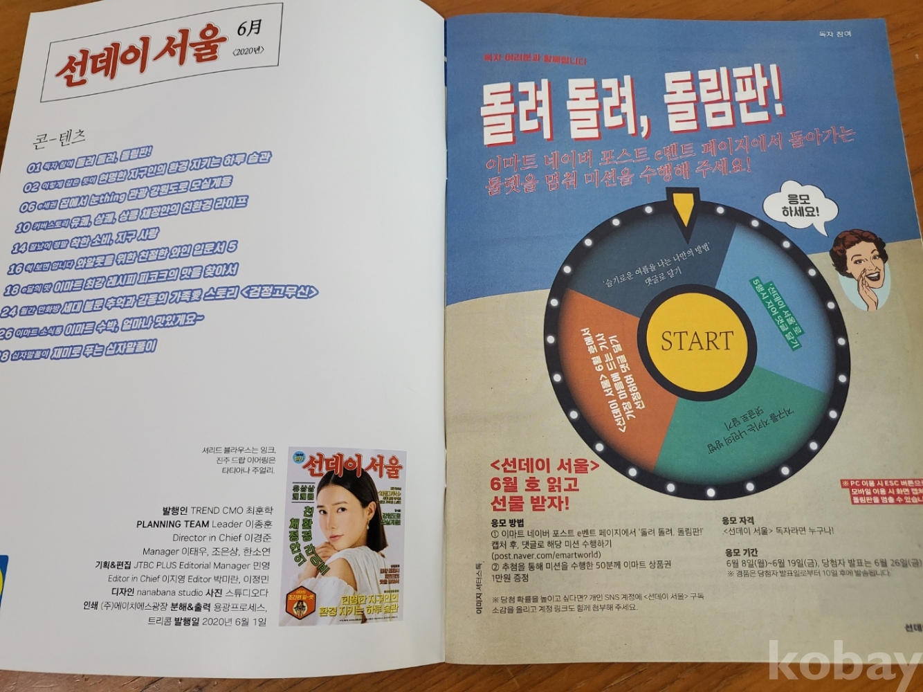 1. 선데이 서울 2020년 6월호, 이마트, 2020년, 28쪽, 월간, 비매품, 이마트 소식지, 표지 모델(배우 채정안), 상태 상, 사진 참조