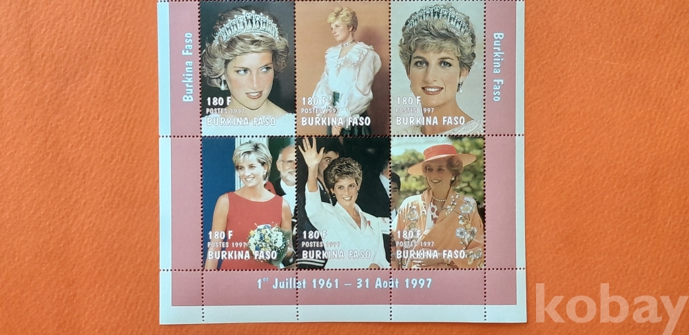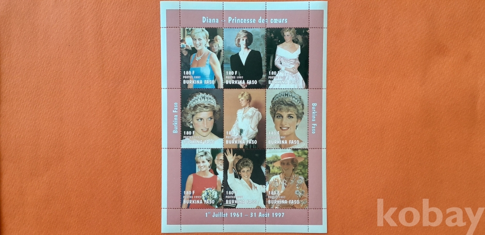 서아프리카 부르키나 파소에서 발행한 다이애나 영국 황태자비 시트렛 1매 입니다.